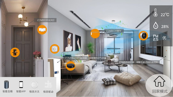 6、場景設(shè)置:回家時,在家門口用遙控器直接按"回家"場景。